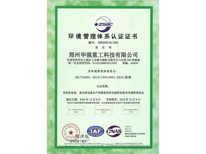 環(huán)境管理體系認(rèn)證證書