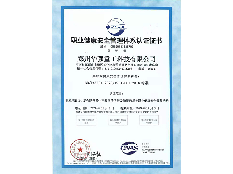 職業(yè)健康安全管理體系認(rèn)證證書